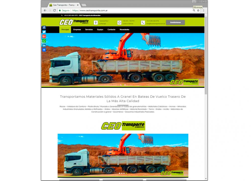 www.ceotransporte.com.ar – Otra página realizada por Mark3ting Empresa de Transporte de Minerales en La Pampa Argentina