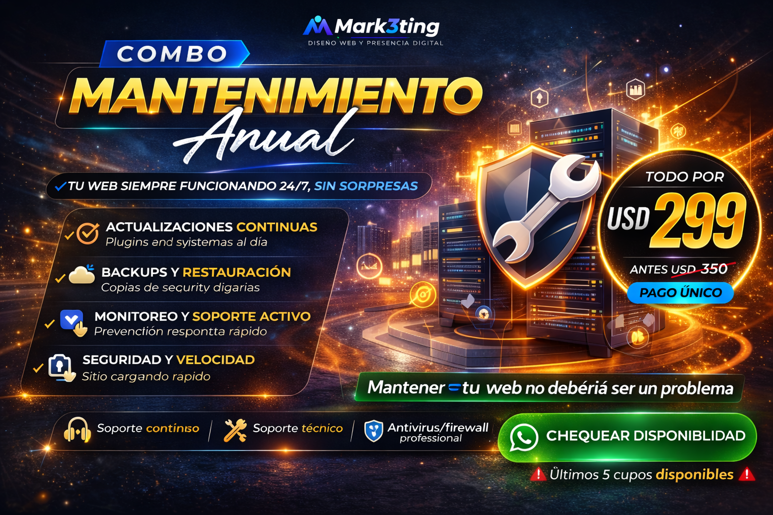 Actualizaciones, backups y soporte continuo para que tu web funcione 24/7 sin riesgos ni interrupciones.
