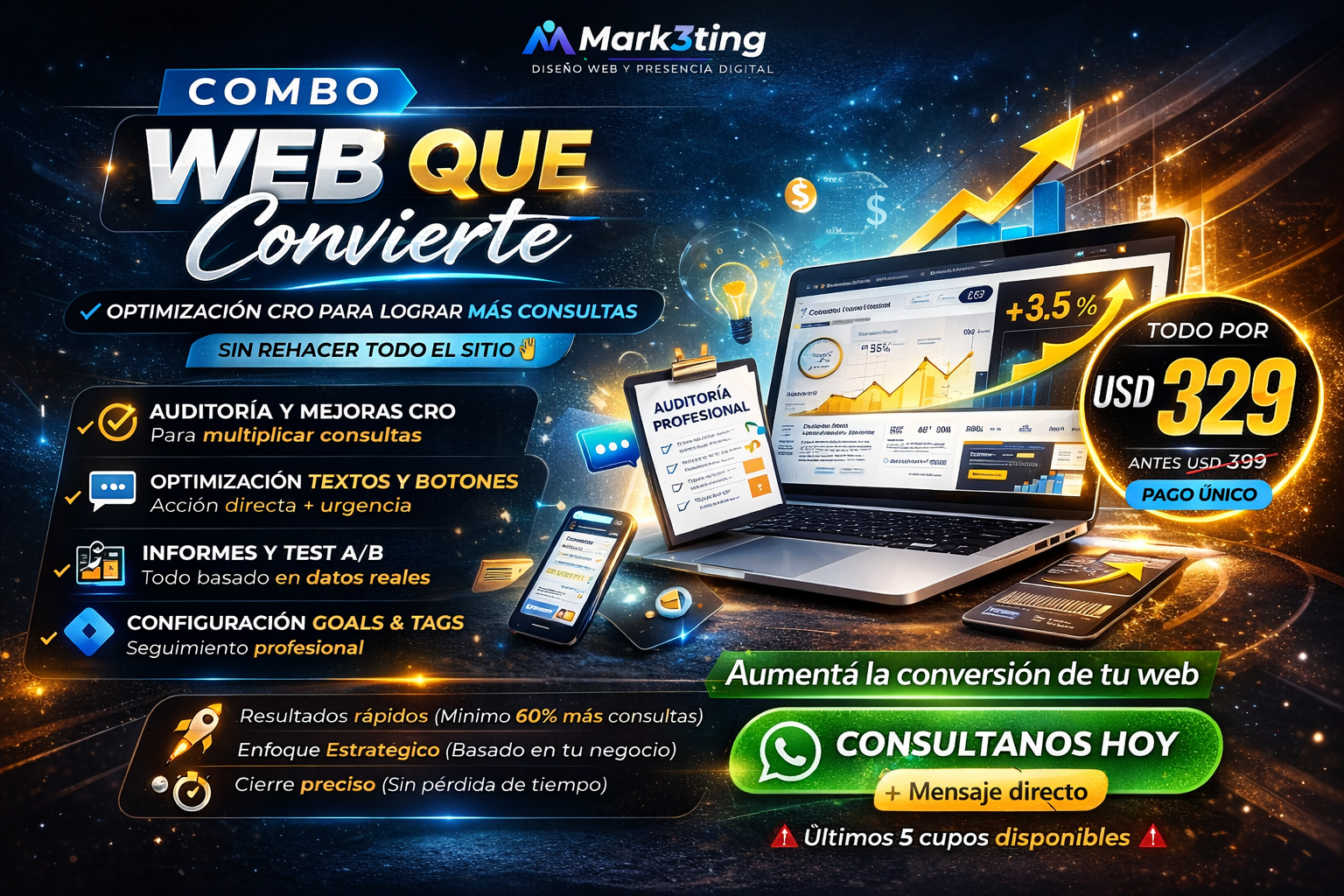 Optimización estratégica de tu sitio actual para transformar visitas en consultas reales sin rehacer todo desde cero.
